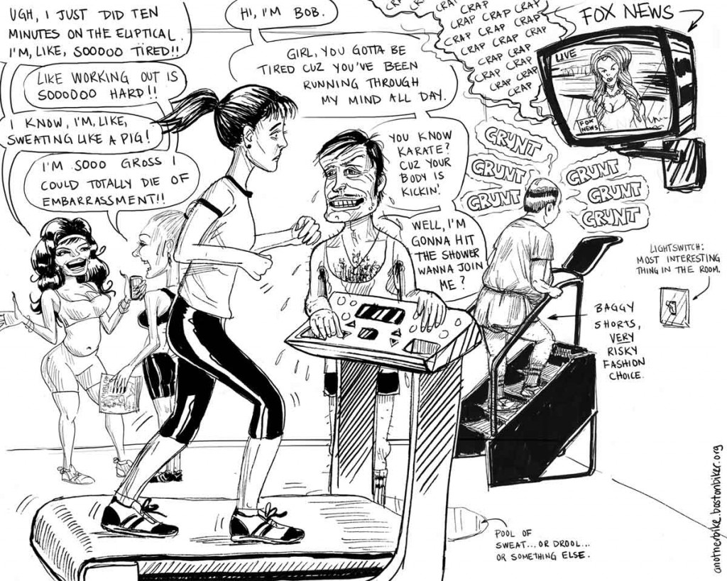 LOL, wtf is it with gyms and Fox News? It’s the same out here on the West coast. Now I ride by my old gym and it’s very hard to not blow a raspberry at the people lined up on the other side of the glass pedaling away on the stationary cycles…