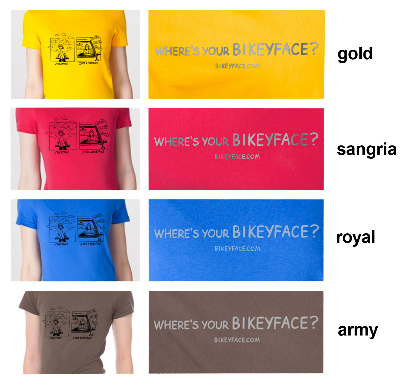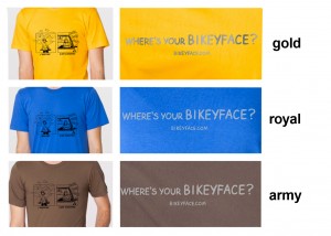 Would you like to have a Bikeyface on your chest? You’re in luck! For a limited time I’m offering special edition Bikeyface T-shirts for Bike Week which is May 14-18th.