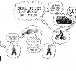 But the problem is that the people who cycle realize what a privilege it is to have a car and to be able to drive. People who only drive don’t realize that it is a privilege and tend to become WAY TOO DEPENDENT on it.