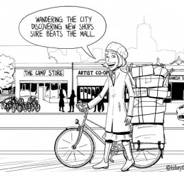 I’m sick of the helmet hype. It’s time to hype up infrastructure until “cycle track” is in everyone’s vocabulary. I dream of the day this guy will ask the city what’s up with the street design that makes cyclists feel like they need to wear helmets.
