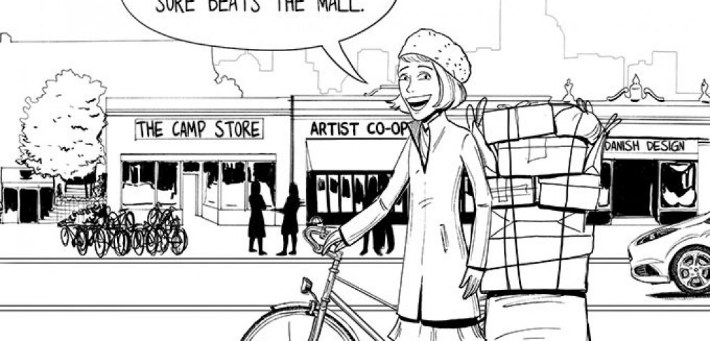 In the amount of time it takes to walk from Macy’s to Best Buy I can bike from my favorite sandwich shop in Southie, to my favorite clothing store in Cambridge. The whole city is my “mall” just like it was originally designed.