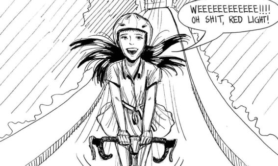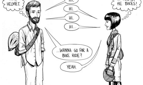 Bike helmets aren’t just good for brain-protection, they are also the ultimate accessory when I’m away from my bike. For example when I run into a cute stranger who is also carrying a helmet… That’s pretty much all it takes. I’ve considered carrying them all the time- even when I don’t travel by bike.