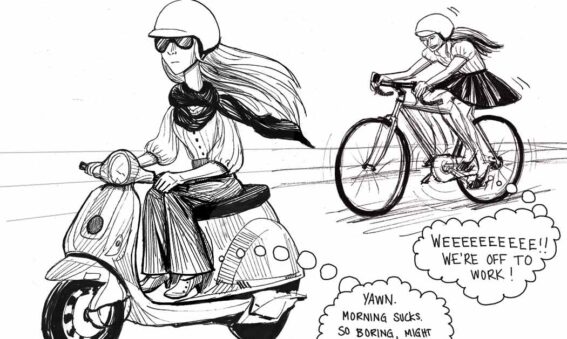 Every morning this woman on a Vespa passes me looking very stylish on her way to work. I can’t help but wonder- aren’t her legs bored?